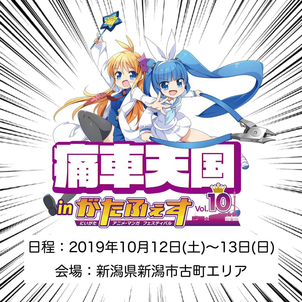 台風19号の影響により「がたふぇすVol.10」が中止となりました。それに伴い、併催イベントの「痛車天国inがたふぇすVol.10」も残念ながら中止となります。