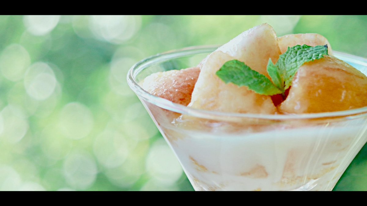 福島の桃を使って、小さなパフェを作りました。