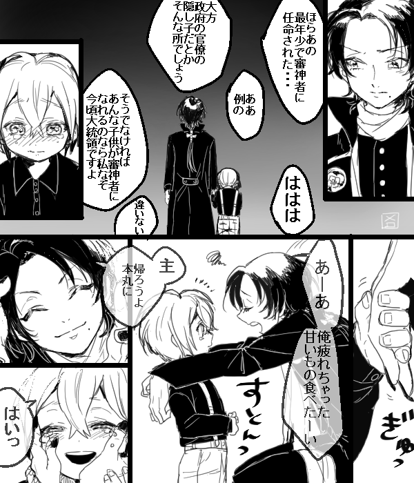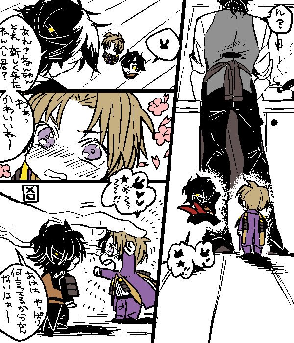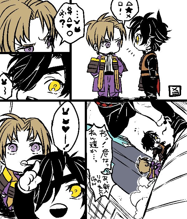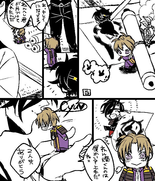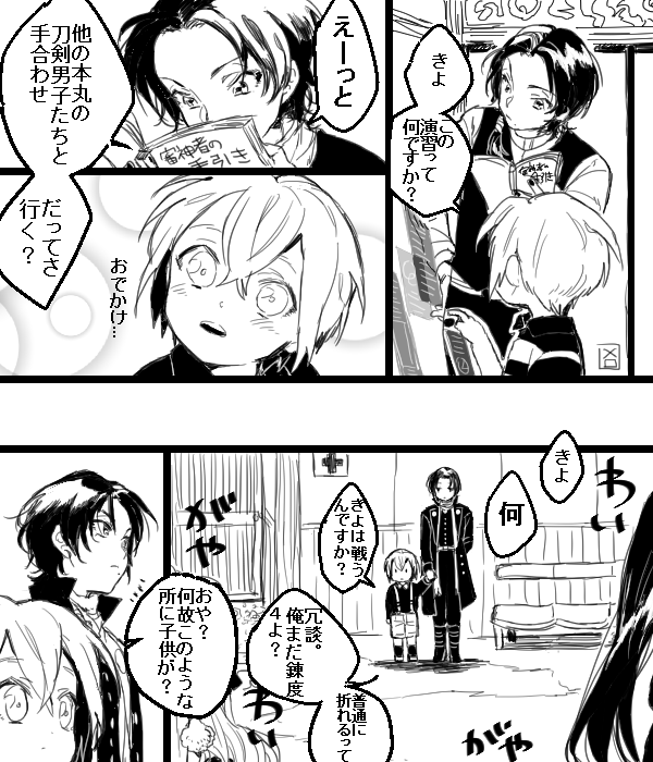 ※※幼児化注意※※ 落書き漫画です。柊さんところの一振り目とうちの闇の設定の雛(ちび燭さんのほう)。雛のせいで一振り目の部屋に家具が増える。