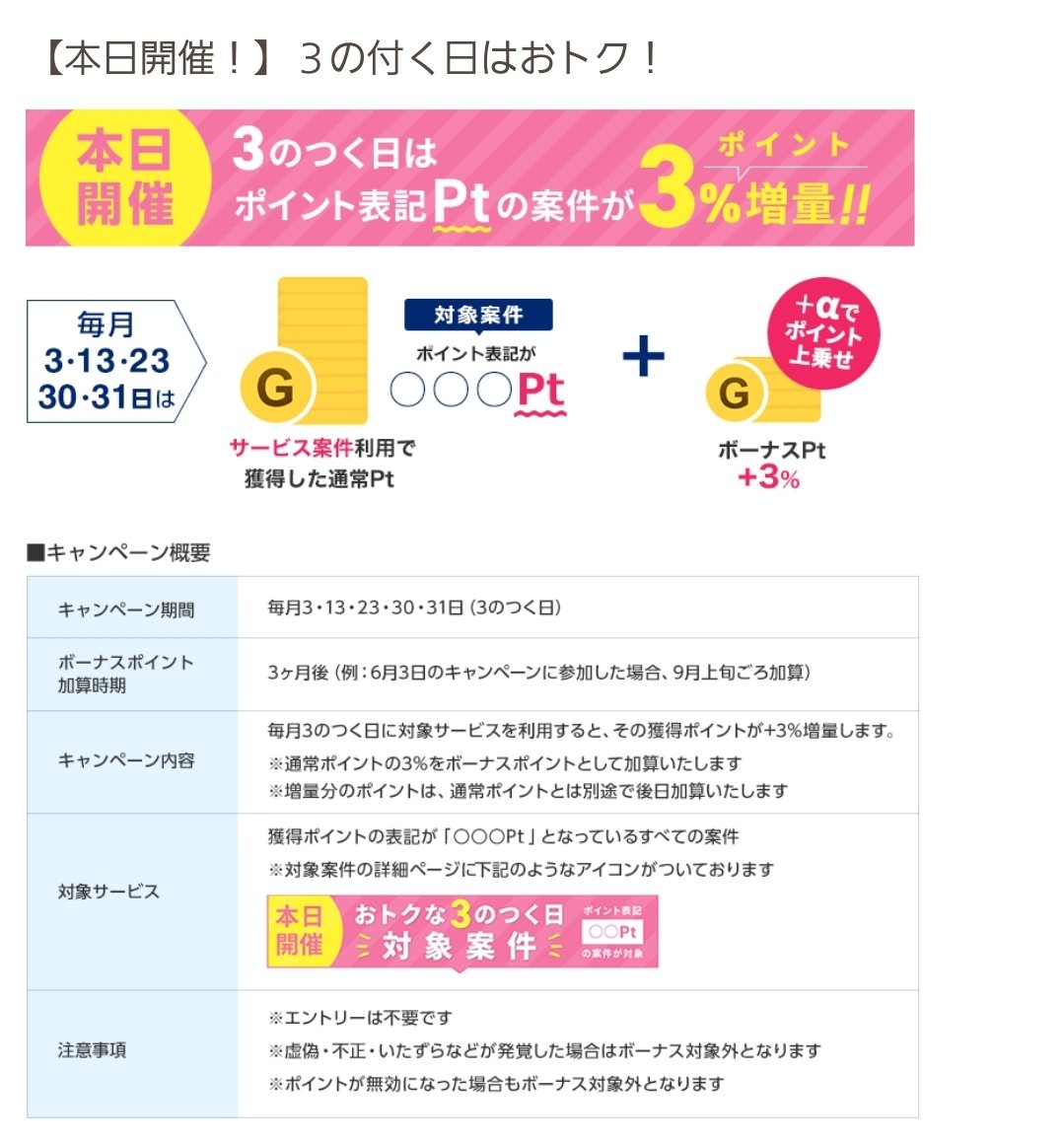 さらに当アカウントの特典で700円と3のつく日のイベントとして獲得ポイントに+3%増量されますよ~。