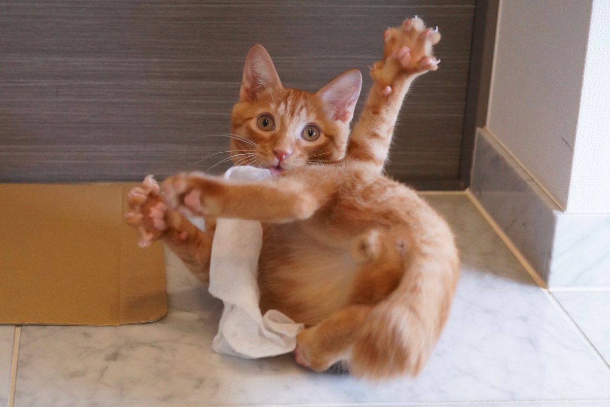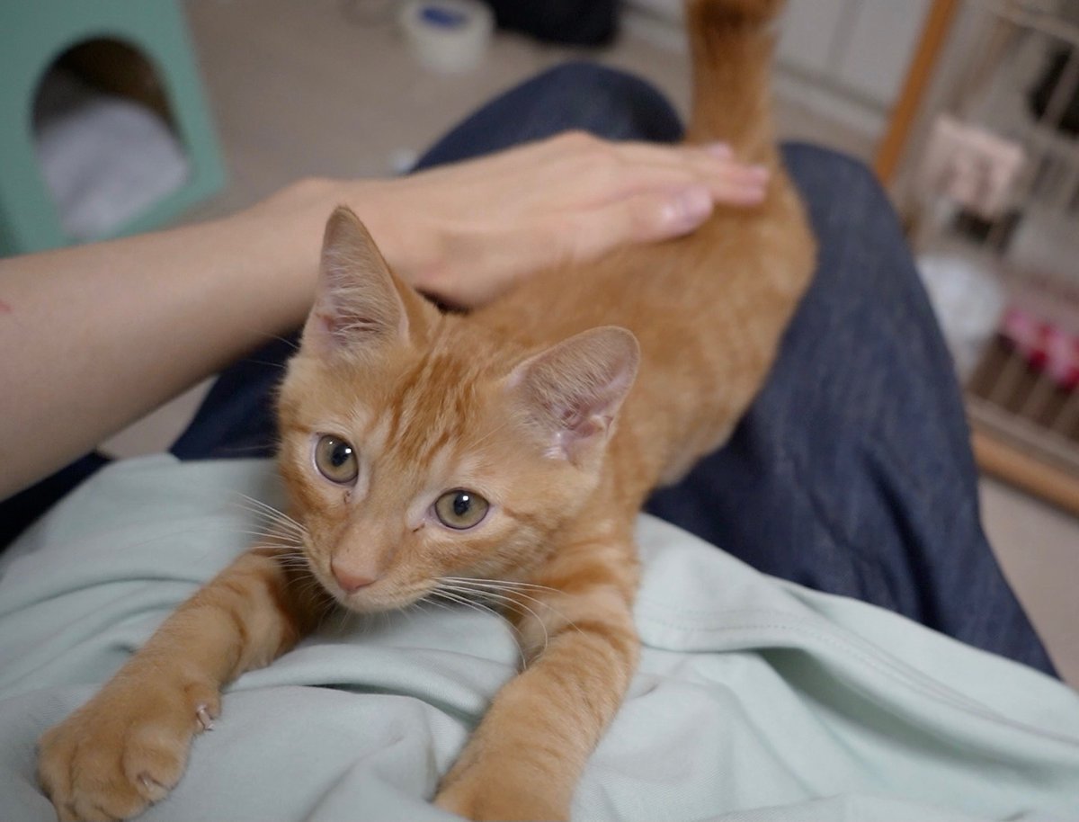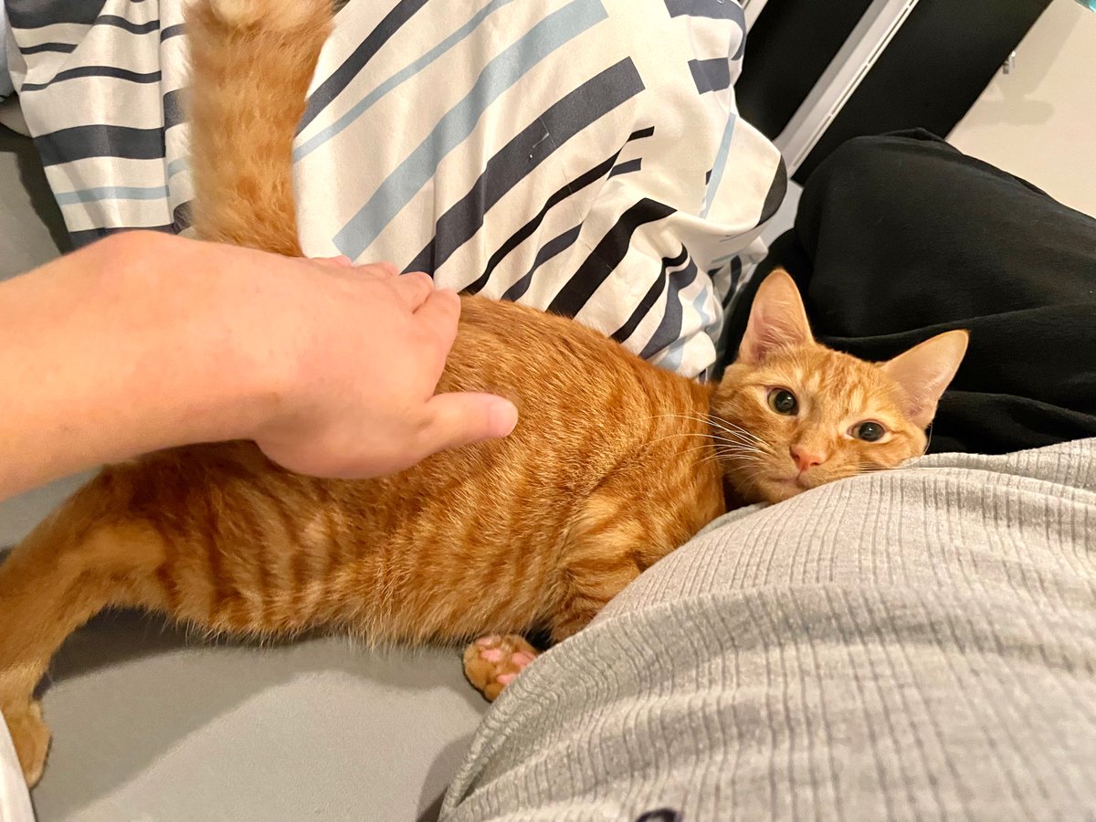 なかなか起きない僕の腕に抱きついて寝てたけど、ようやく起きたのが嬉しくてグルグル喉を鳴らしちゃうリドくん