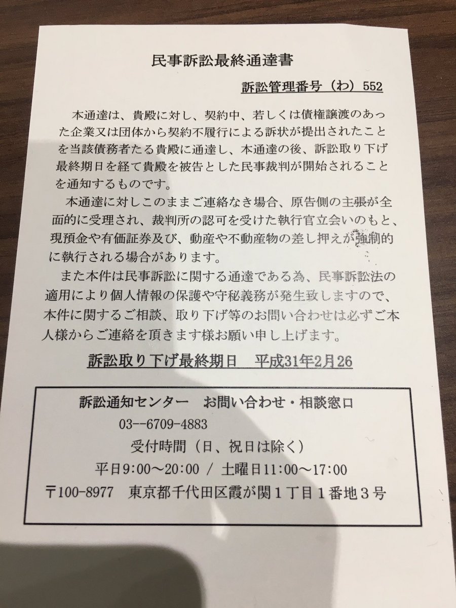 今日、民事控訴最終通達書なるものが届いた。何事か分からなかったので検索したら架空請求詐欺らしい。