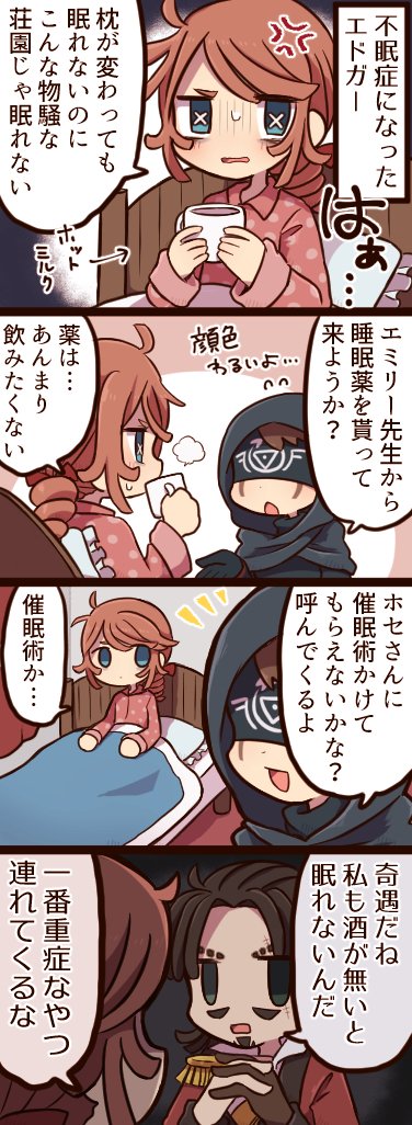 荘園にきて眠れなくなってしまった画家くんの4コマです