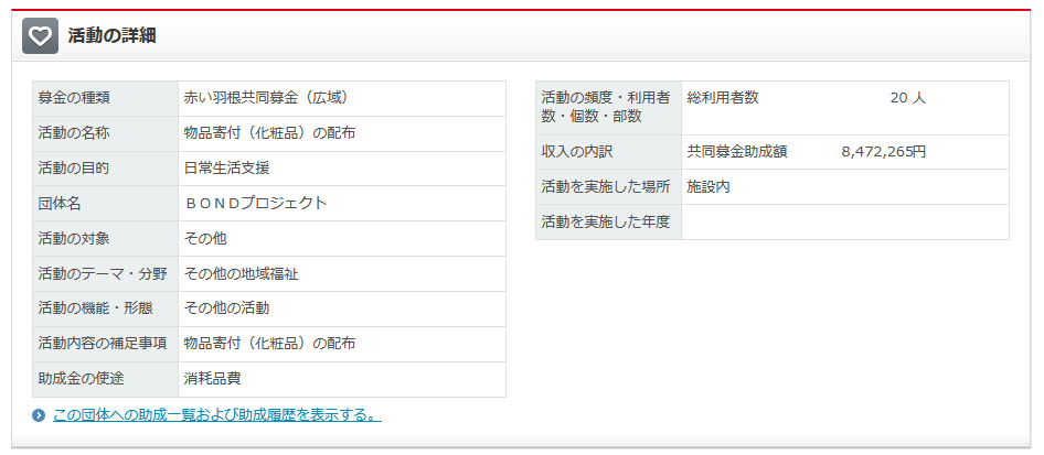 一人あたりの化粧品代と配布コストを出して欲しいところですが共同募金の助成ですからそんなものは出なさそうですね