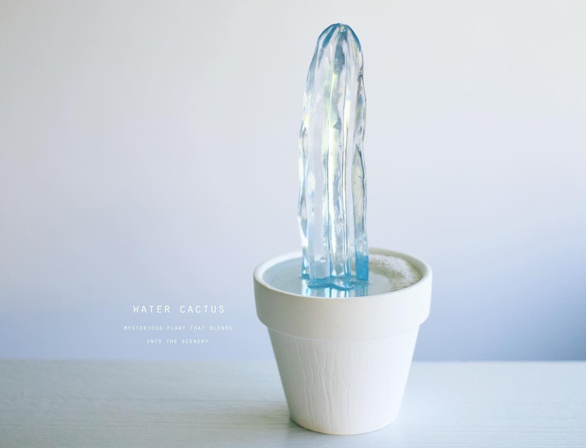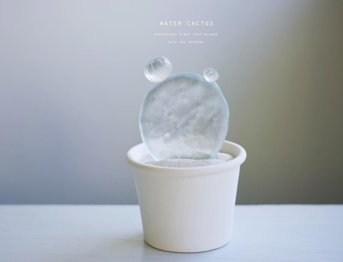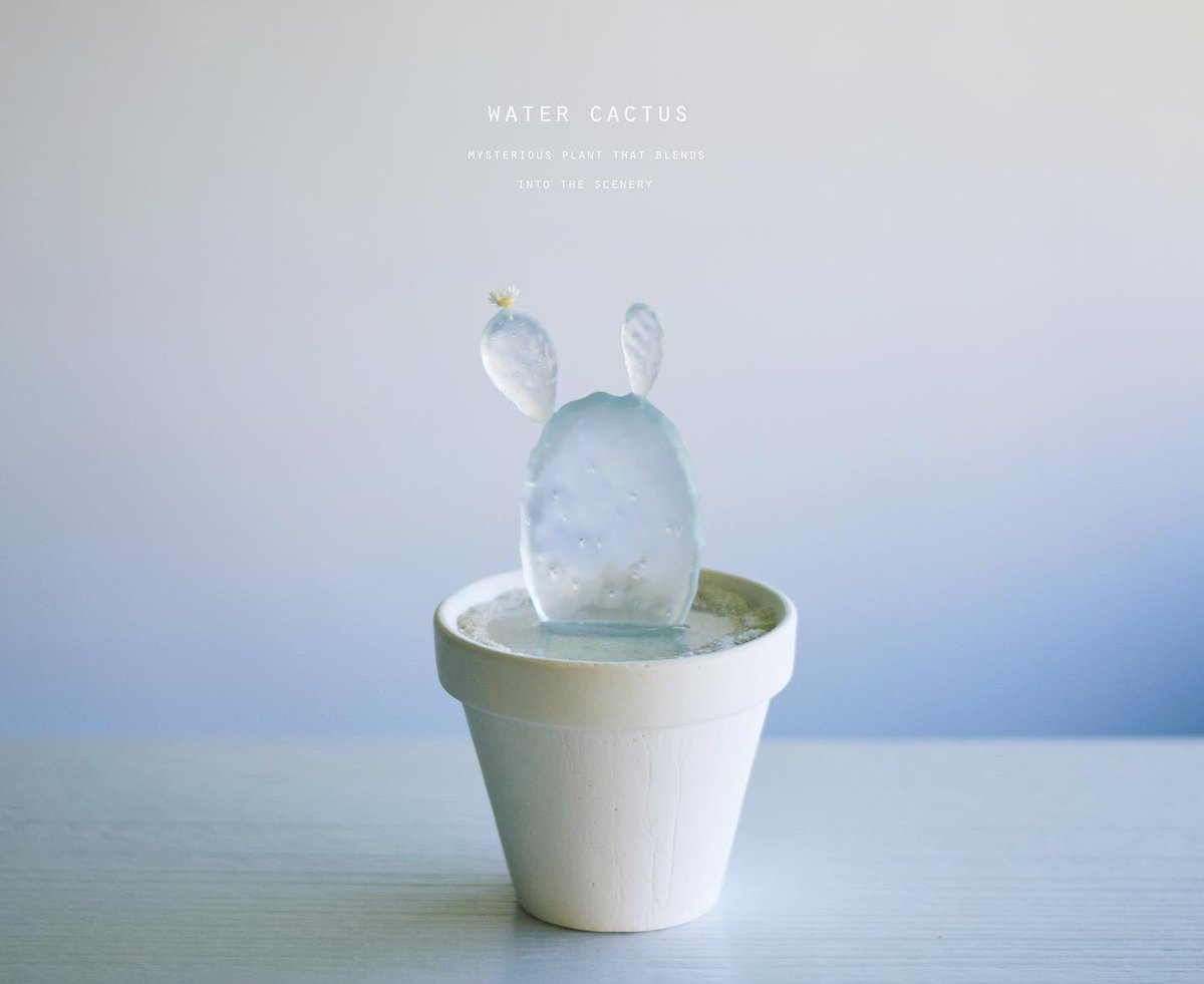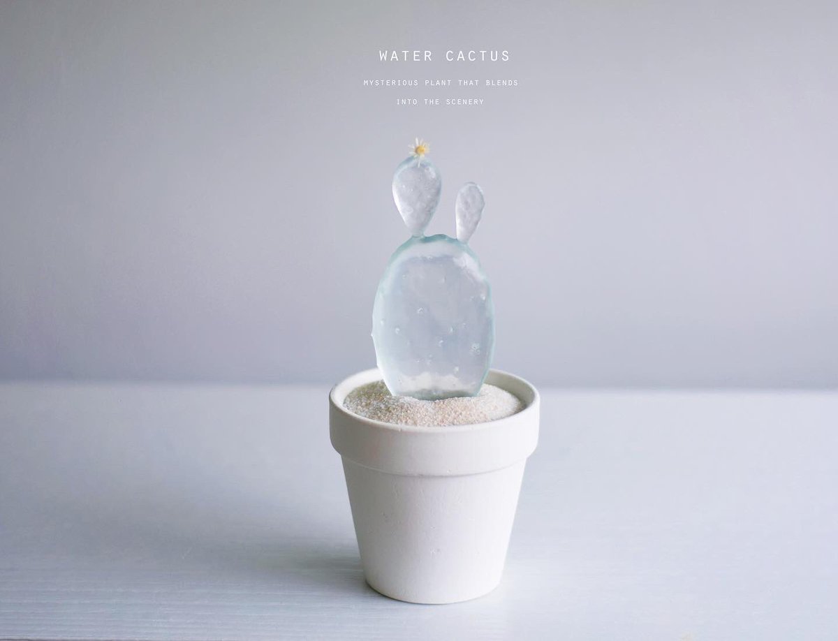透明な水サボテンを専門に取り扱う「空白植物店」 オープンしてる🌵 透明水サボテンは樹脂製の造形作品です。 サボテンが溜め込んでるお水を感じさせ涼を届けてくれる、この季節にふさわしい植物でございます。