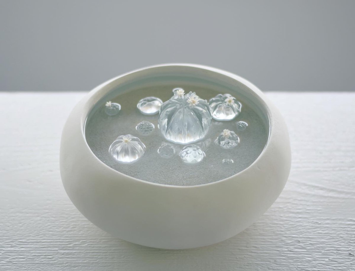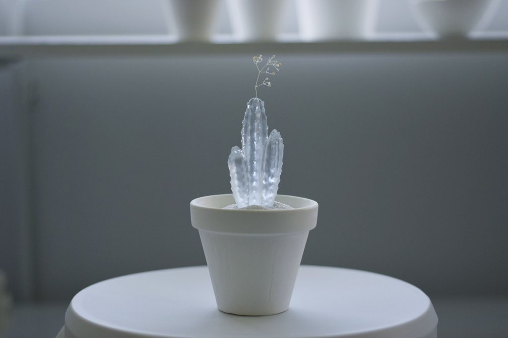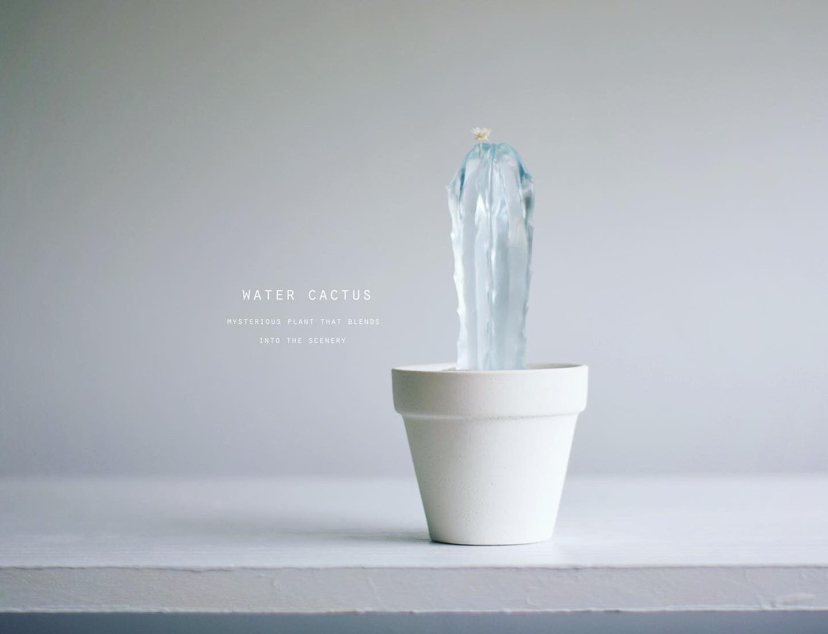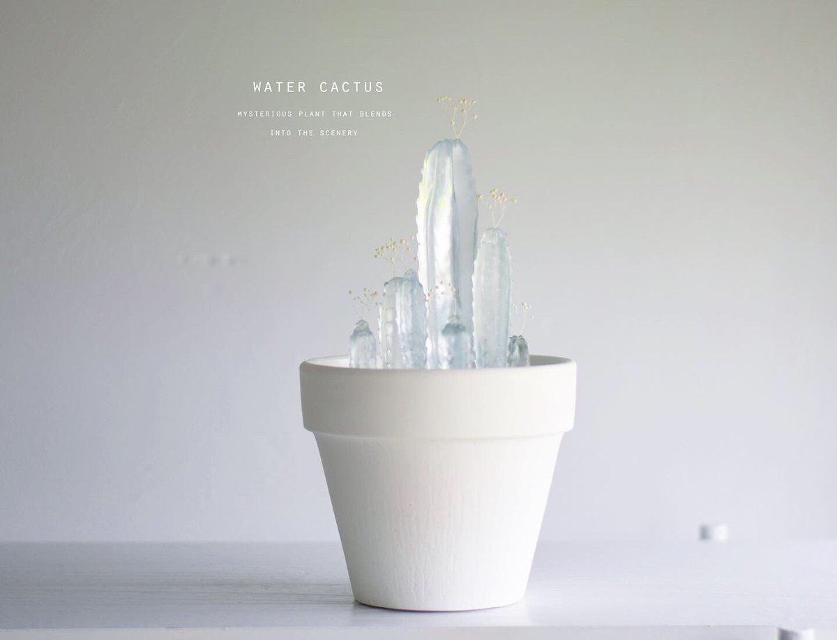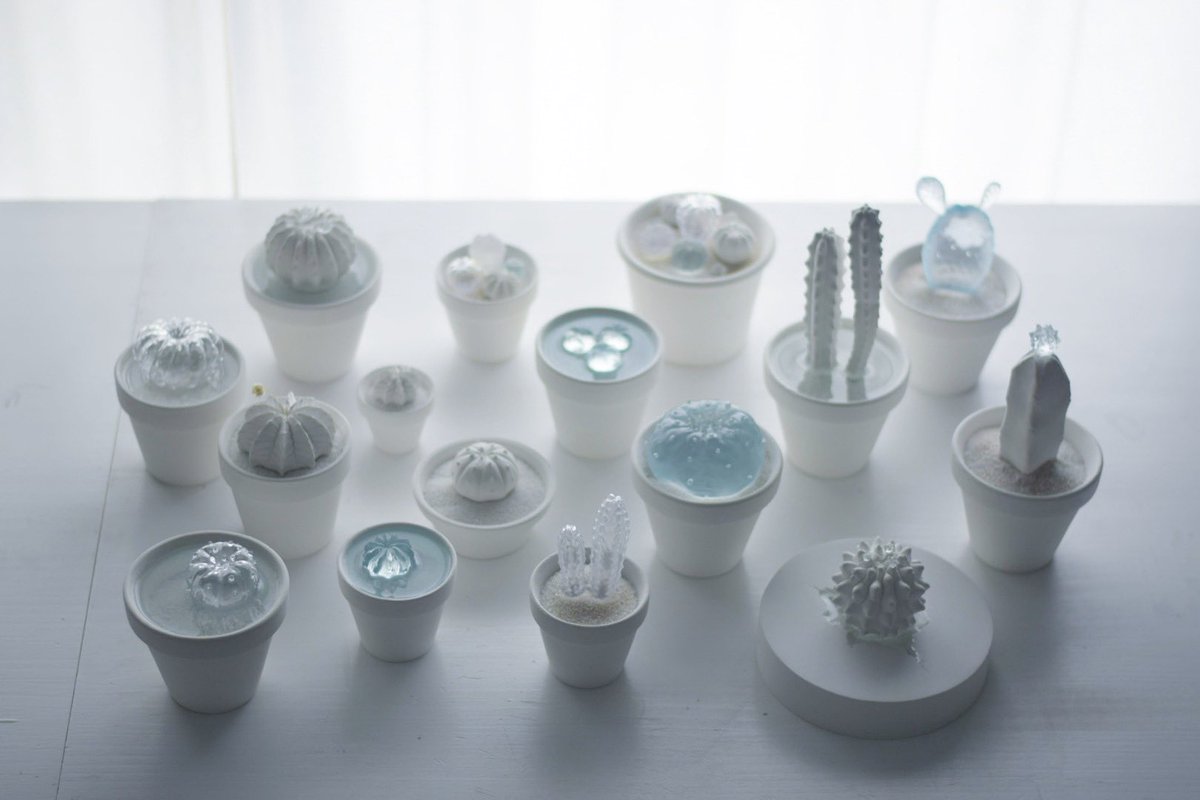 透明な水サボテンを専門に取り扱う「空白植物店」 オープンしてる🌵 透明水サボテンは樹脂製の造形作品です。 サボテンが溜め込んでるお水を感じさせ涼を届けてくれる、この季節にふさわしい植物でございます。