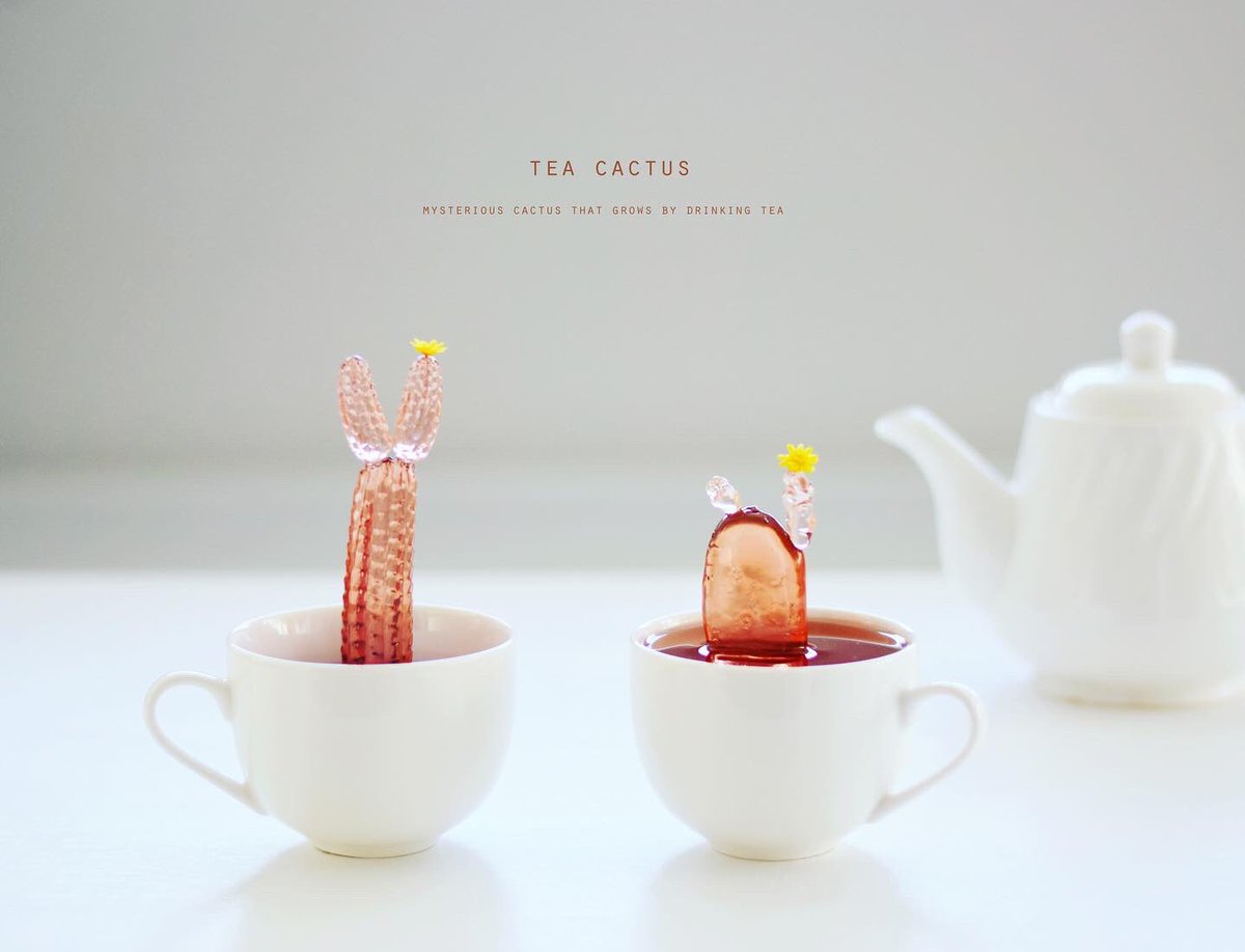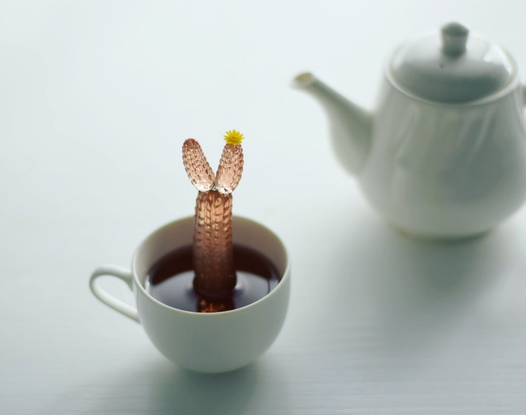 サボテンは本来、体にたくさんのお水を溜め込んで生活していますが、この子たちはお水より紅茶が好きなサボテン、ティーカクタス🌵 ティータイムに現れティーカップの中で紅茶を飲んでいる事が多いです。