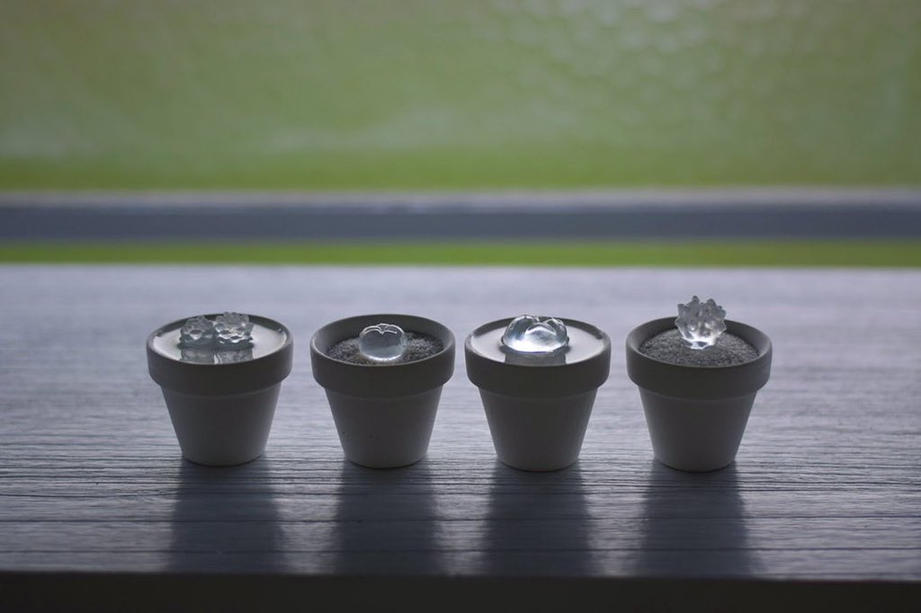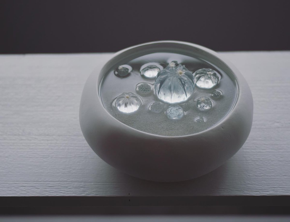 透明な水サボテンを専門に取り扱う「空白植物店」 🌵オープンしてる🌵 透明水サボテンは樹脂製の造形作品です。 サボテンが溜め込んでるお水を感じるプルプルな不思議な植物です。