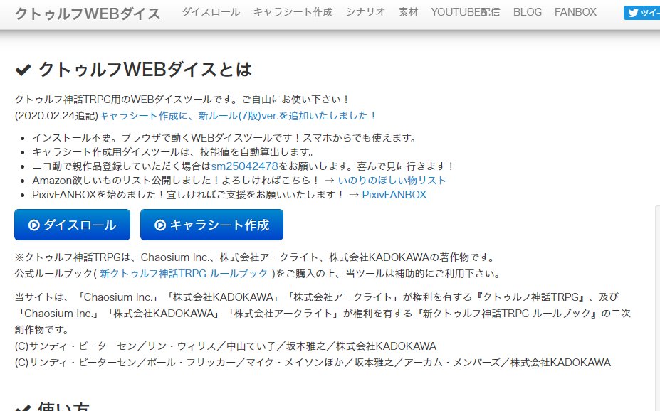 クトゥルフWEBダイスいのりのFANBOXは、TRPGライツ事務局様の許諾を得て、運営を継続させていただきます。