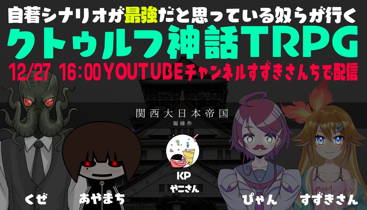 くぜさん作シナリオ「声なき呼び声」のセッションをおおやま、ぜろつー、藍月すりっぷの3人でやりま~す!