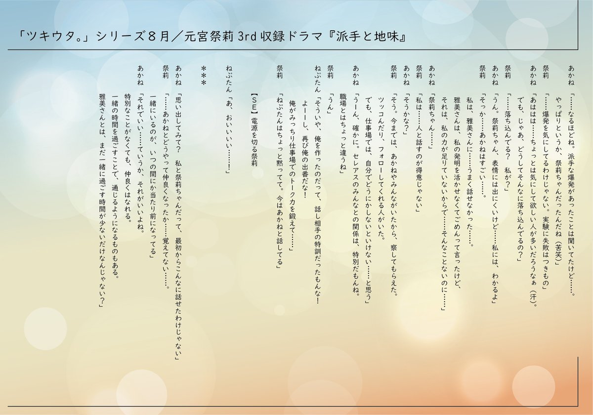 祭「どーも、大人の元宮祭莉です。聴いてください。『You-I Duality』」