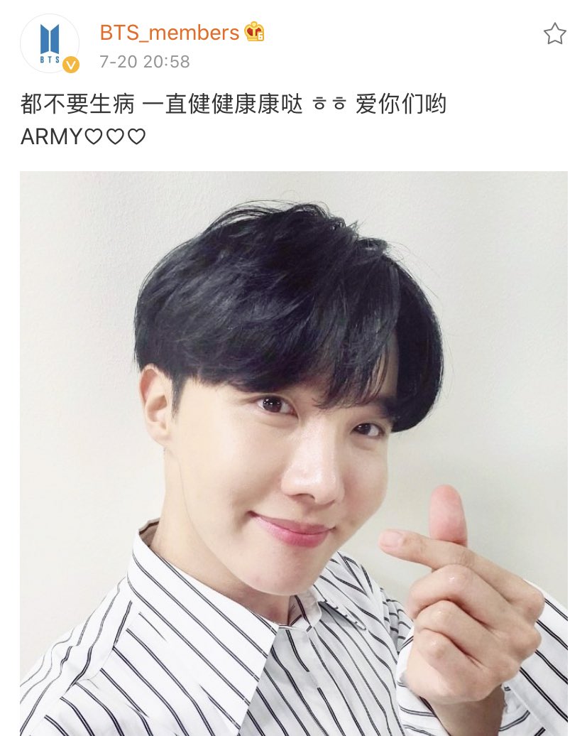 {#멤버웨이보} 모두 아프지 말고 항상 건강하게 ㅎㅎ 사랑해용 아미 ♡♡♡