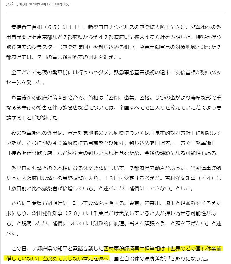 西村大臣が「そんな国は存在しない」とした、ヨーロッパ各国の補償などに関する対策をご覧ください。