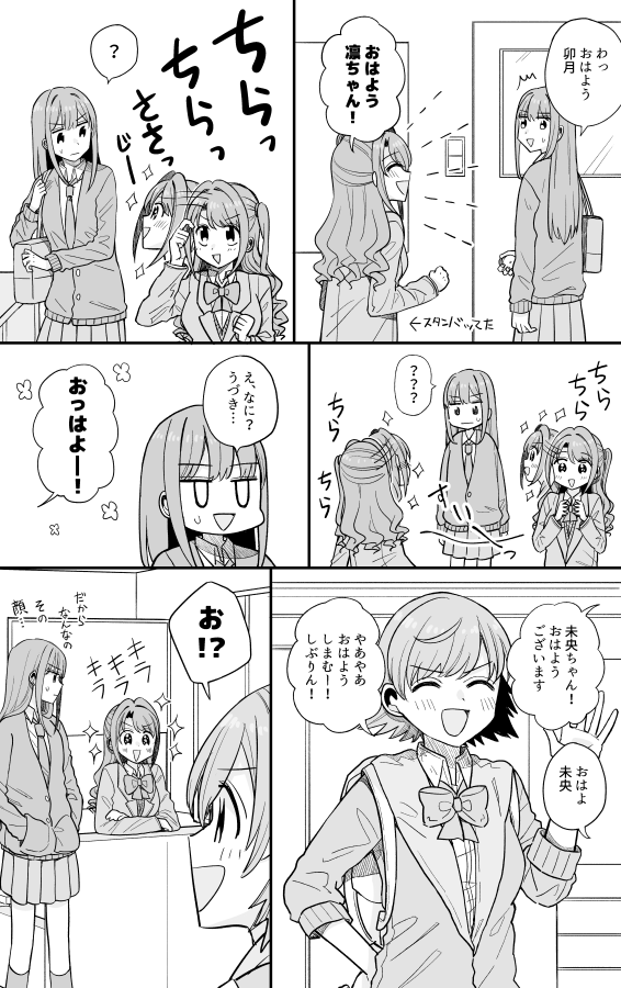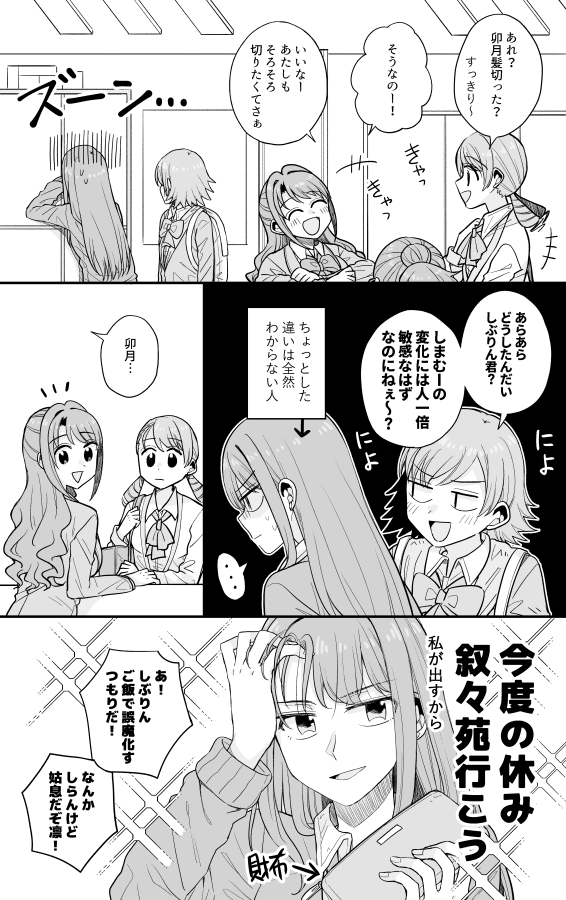 なんと今日はなつきさん(@E4F1DfdrB3aDm0A)ともゆさん(@Freemoyu)が狼凛ちゃんと巫女卯月で売り子してくださります!!!新刊通りでやばいすごい!!すごい!!最高!うづりん見に来てくださいー!!!!