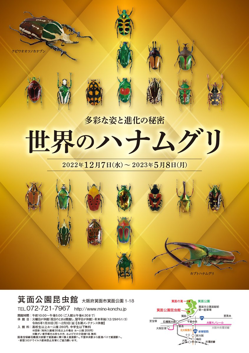 企画展「世界のハナムグリ」設置完了しました。869種2256点の標本を展示します。また、ゆるふわ昆虫図鑑(@64zukan)でお馴染みのじゅえき太郎先生(@juekitaro)に今回の企画展のために特別にハナムグリ漫画を描いていただきました。会期は2023年5月8日までですので、是非ご来館ください【館長】