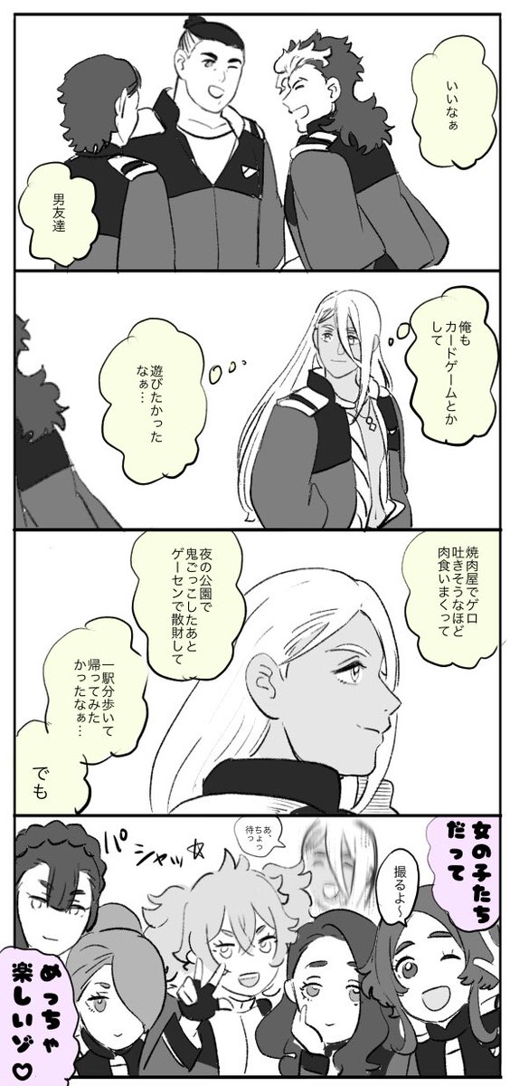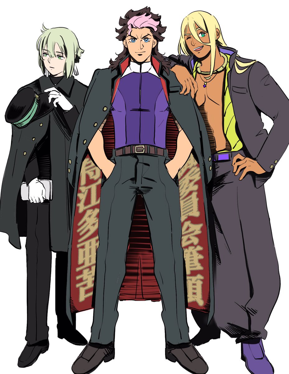グエルは白ランのが似合うけどマフィアでしかなかったので微妙な色味に…似せる気無いけど右二人の不良っぽいポーズ良いよね