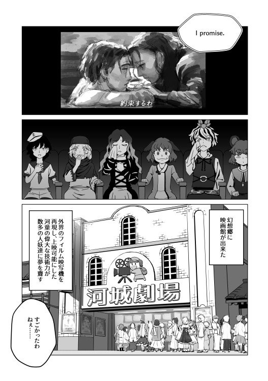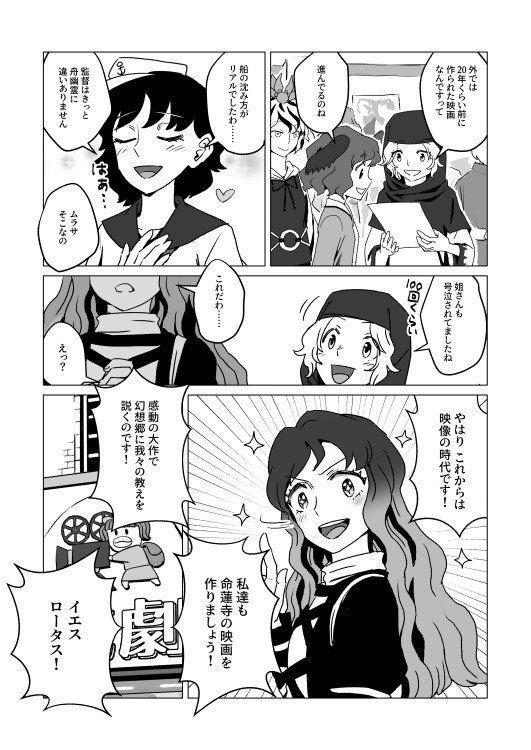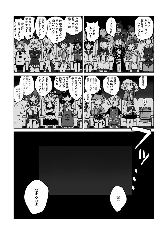 というわけで、秋例大祭新刊はこんな感じのやつです。 命蓮寺連中がクソ映画を作るクソ漫画です。 表紙がまるで響子が主人公みたいになってしまっていますが、中身もまるで響子が主人公みたいになってしまっています。 た26a『壱萬弐阡廻』でたぶん500円くらいで頒布されますので気をつけて下さい。