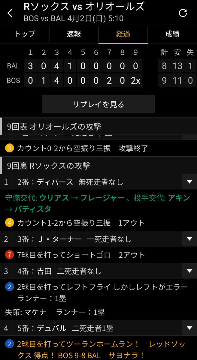 吉田正尚レフトフライで試合終了と思いきやレフトGGエラーからのデュバルの2ランホームランでレッドソックスまさかのサヨナラ勝ち🤯🤯 こんなん贔屓でやられたら逝くで😇