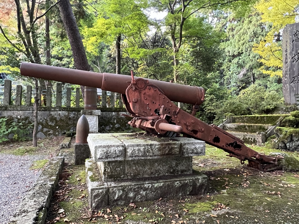 新潟県上越市にある春日山神社。日露戦役の鹵獲品のロシア軍カノン砲が奉納されている。