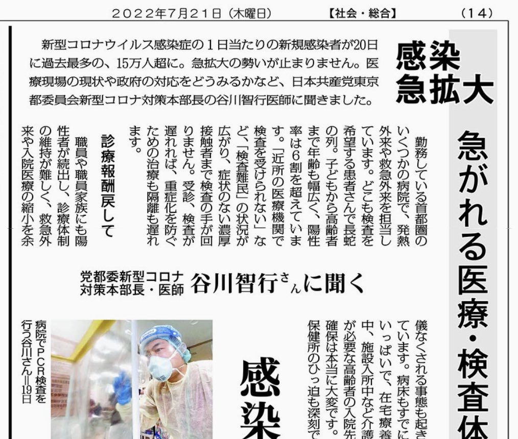 谷川智行 医師・日本共産党中央委員会政策委員・東京都委員会新型コロナウイルス対策本部長