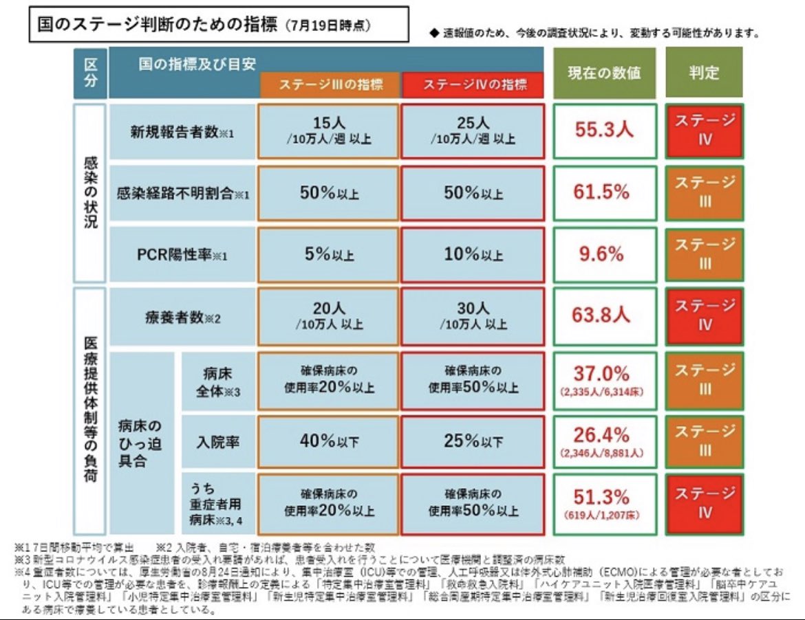 今日発表されたデータ(7/19時点)では、国基準の重症者が619人となり、東京で医療崩壊が起きた第3波のピーク565人を大きく超えました。