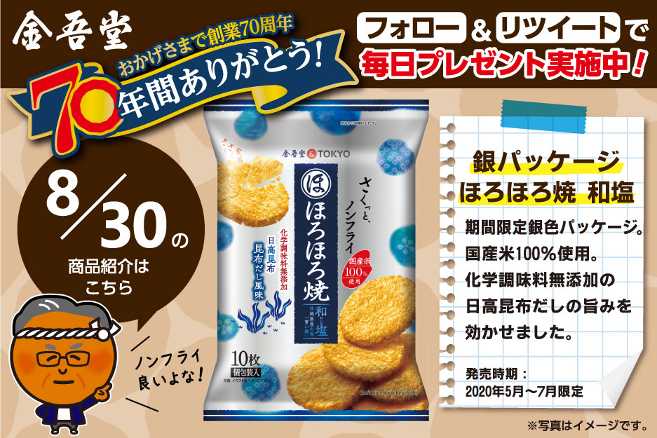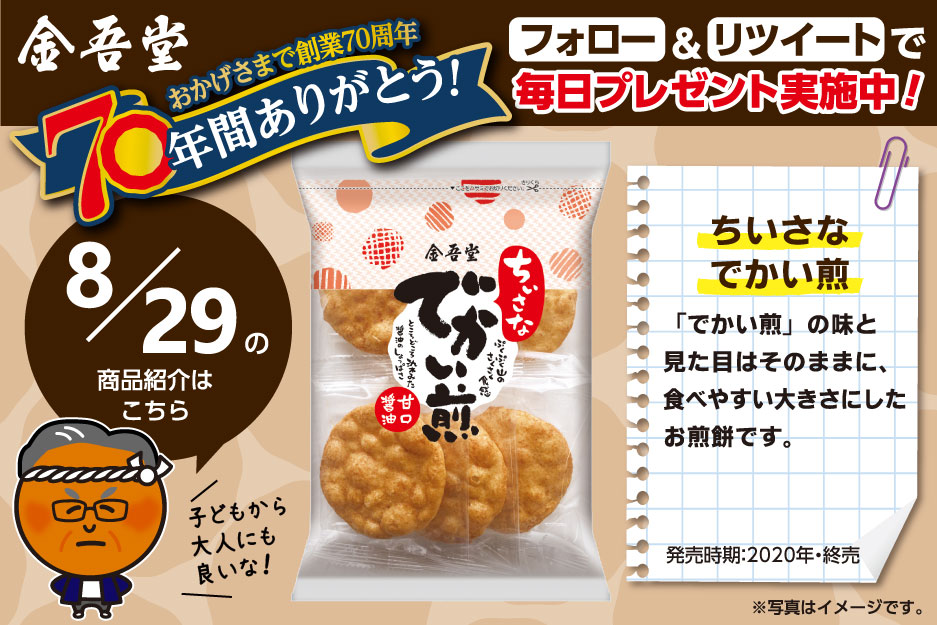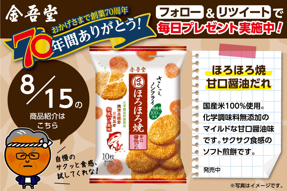 本日から70日間、毎日1名様に金吾堂のおせんべいをプレゼント🎁✨
