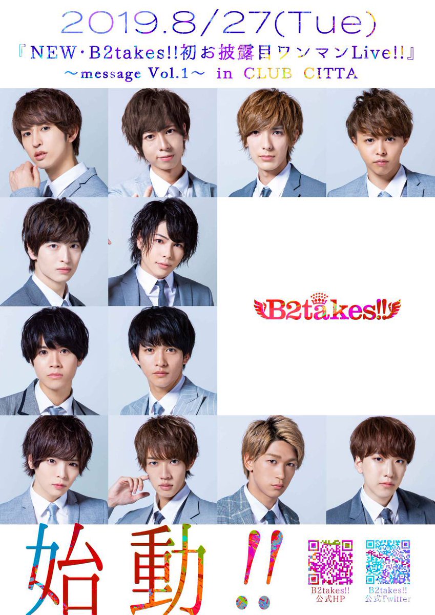 『B2takes!!』 新メンバーの矢島愛弥、21歳です! B2takes‼︎に大きなリスペクトを抱き、感謝の気持ちを大切にします! 僕自身も高い目標を掲げ、 さらに上の上の上にいけるよう頑張っていきます🤟 8/27のライブで皆さんにお会いできるのを楽しみにしています!! これから応援よろしくお願いします🙏
