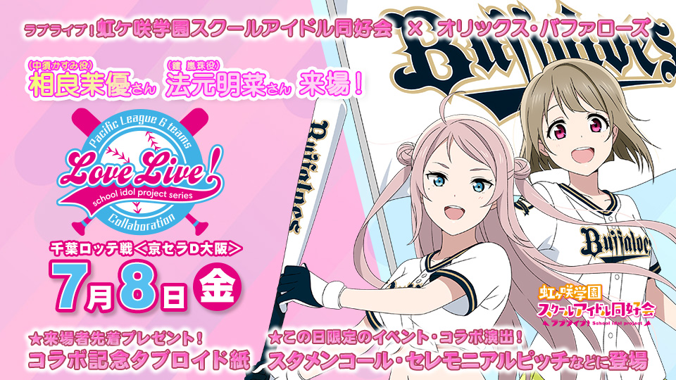7月8日(金)開催の「ラブライブ!虹ヶ咲学園スクールアイドル同好会×オリックス・バファローズ コラボ試合」に合わせ、コラボグッズが登場!