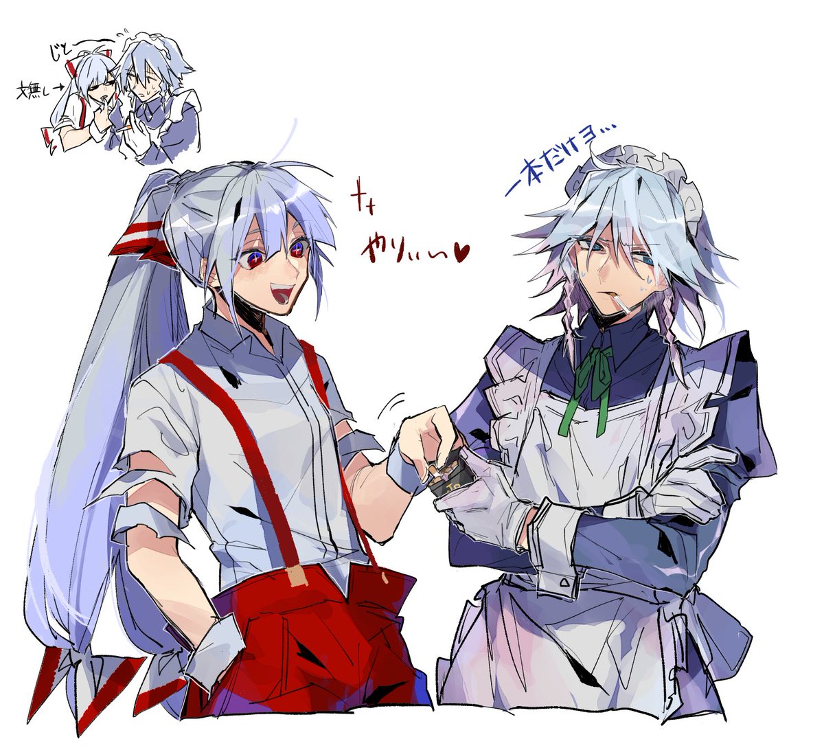 【東方】休憩中に妹紅にタバコをせびられる咲夜さん…(お題箱:喫煙者妹紅/咲夜)