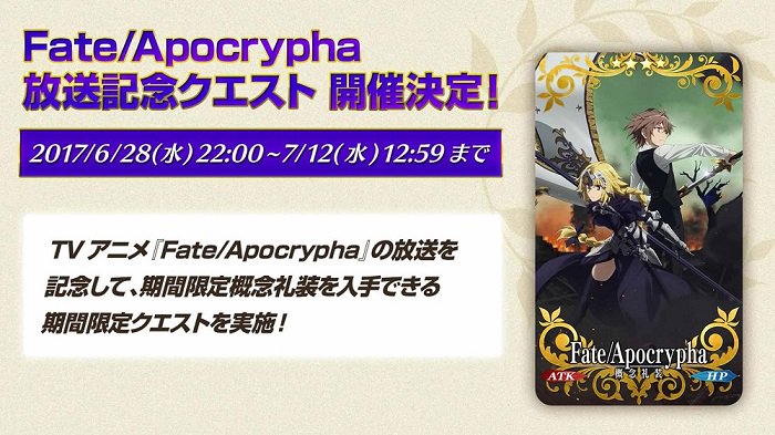 Fate/Grand Orderにて「Fate/Apocrypha」の放送記念クエスト開催決定!