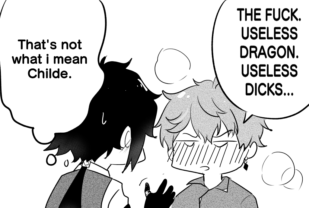 🌼Lumine: Hey Childe nice top! 💧 Childe: Thanks! I boug- 🔶 Zhongli: I have a name 🌼Lumine: .... 💧Childe : .... 🔶Zhongli: 😊