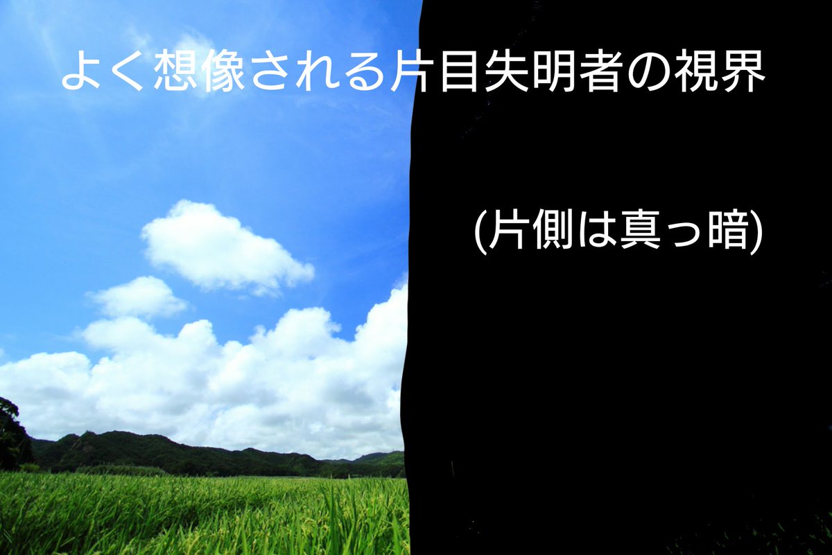 片目が見えない(光覚もない)旨を伝えるとき「見えないほうの視界って真っ暗なんでしょう?」と聞かれることがよくあります。 あくまで私の感覚ですが、こんな感じ!