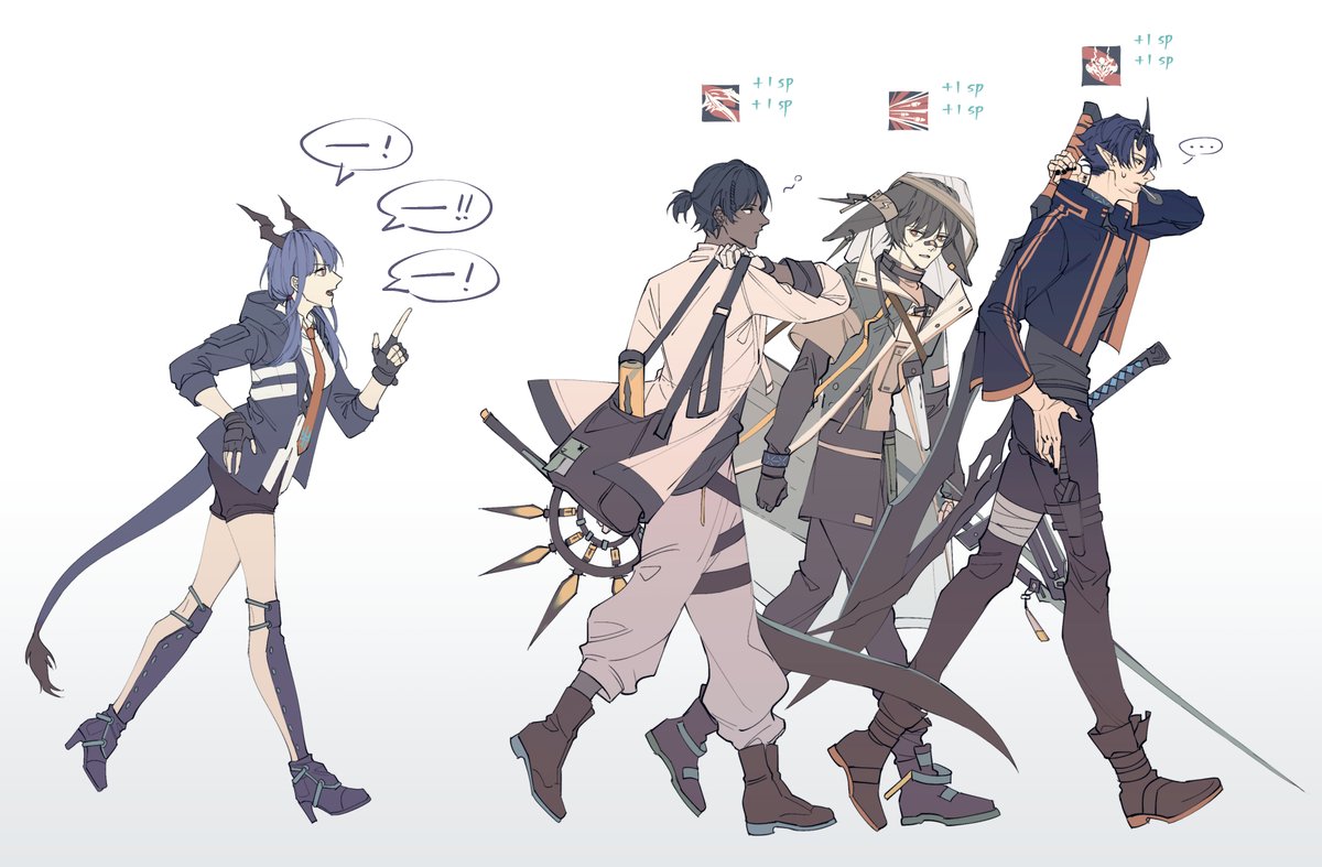 発端はP3の比較図を見て、ロドスにいる分は大丈夫だろうが、この長身な男達は他のところにいったら扉の高さで色々問題が起こるじゃないか?と思いつき描いてみました🙏