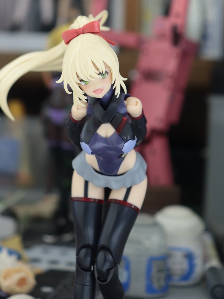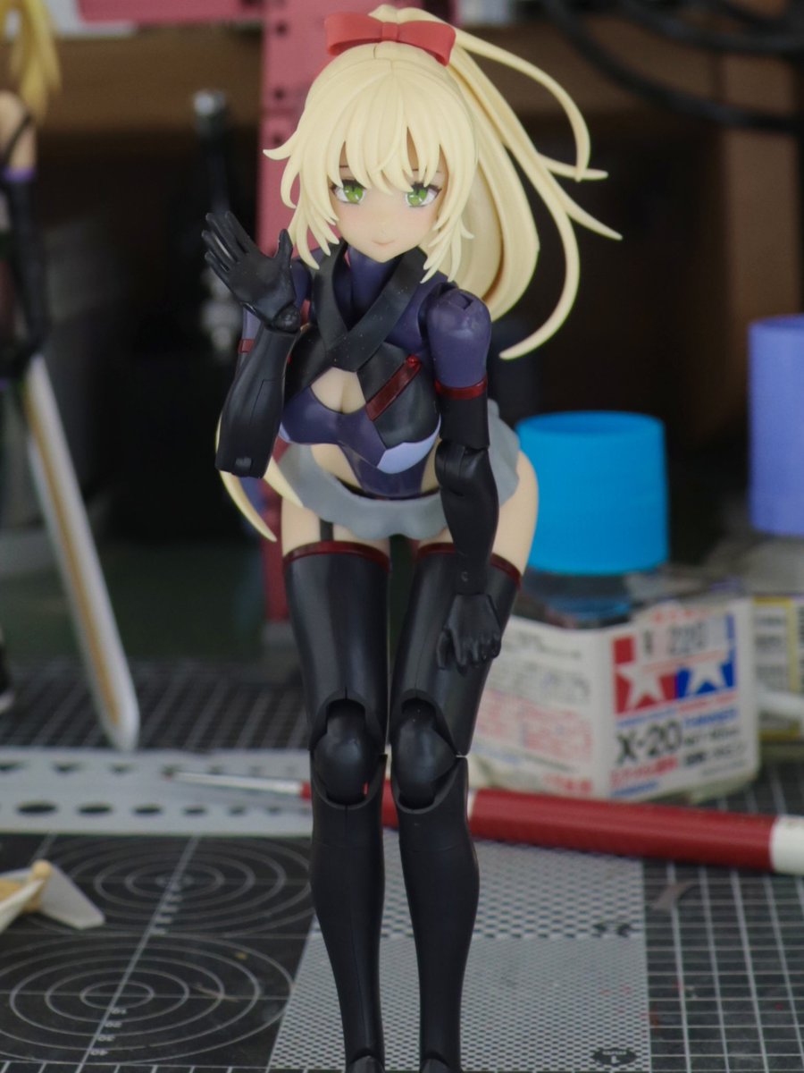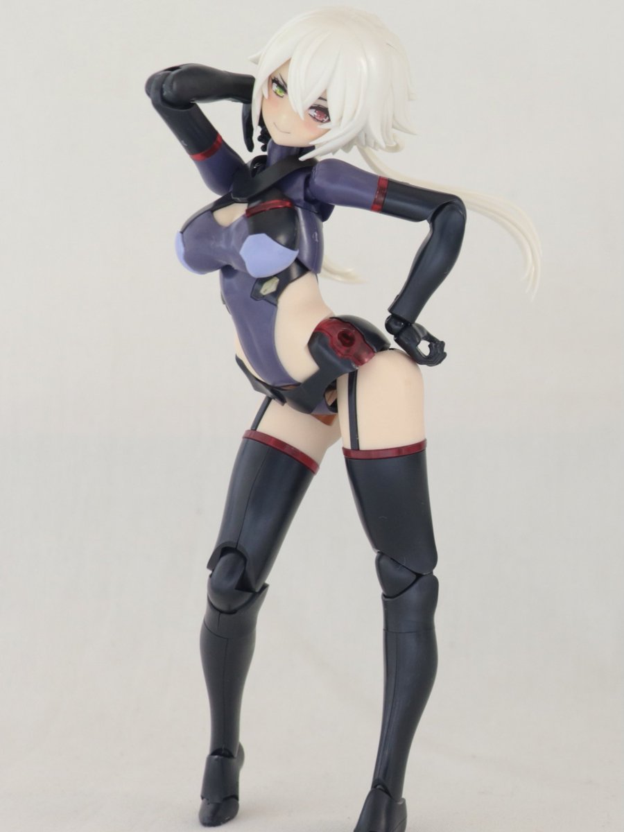 ベースキットにはスサノオを使用し、ヘッドパーツは佐伯リツカから流用!フェイスは自作デカールを使用したオリジナルです、スカートパーツと私好みに大増量したお…胸はエポキシパテで製作しています。追加の武装はそのうち製作します!笑