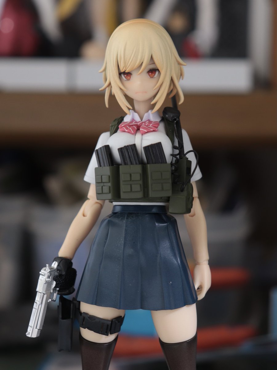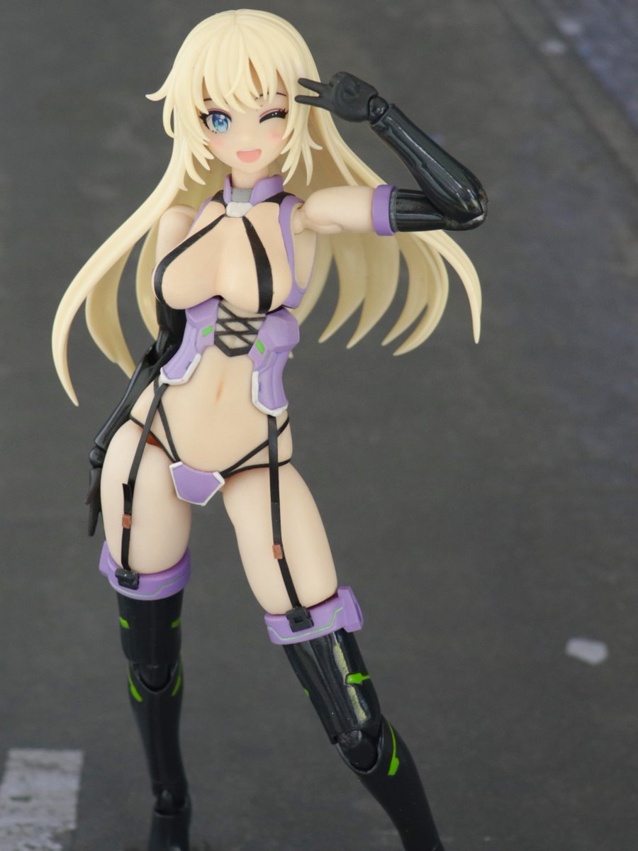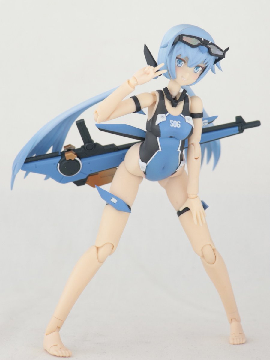 ベースキットにはスサノオを使用し、ヘッドパーツは佐伯リツカから流用!フェイスは自作デカールを使用したオリジナルです、スカートパーツと私好みに大増量したお…胸はエポキシパテで製作しています。追加の武装はそのうち製作します!笑