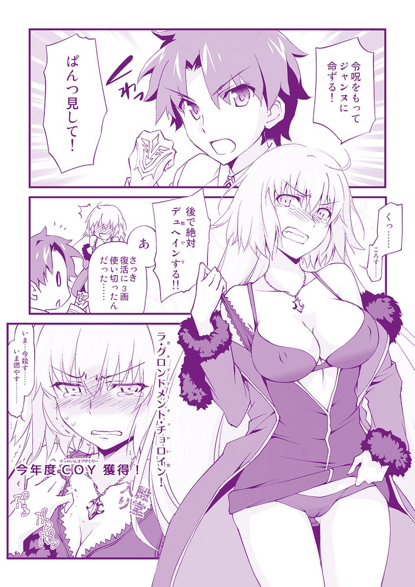 圧倒的チョロさを見せつける邪ンヌ再掲。 #令呪でぱんつ見して