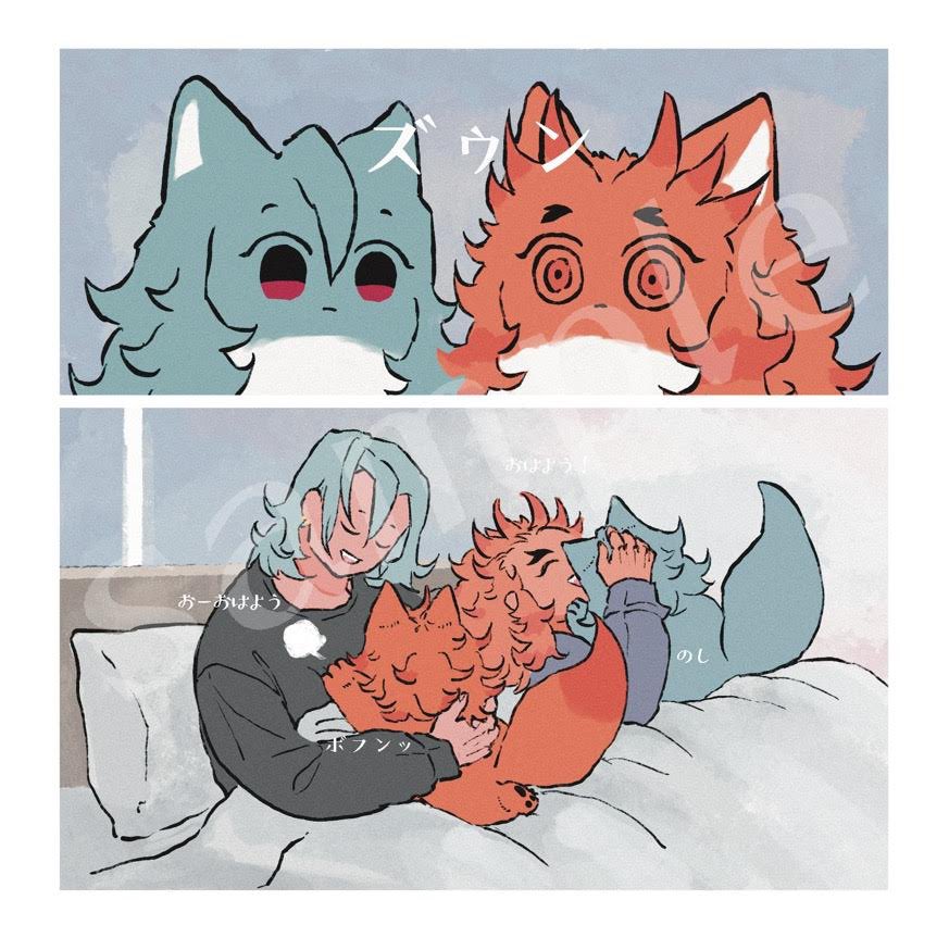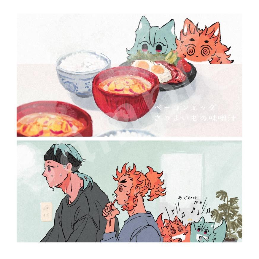 ◆2022.5.3 輝石の焔 2◆ 新刊【はるのゆめ】サンプル 36P/フルカラー/12cm正方形サイズ 宇と煉とケモチャンが一緒に暮らしてます。春、桜舞う日のお話(1/2)