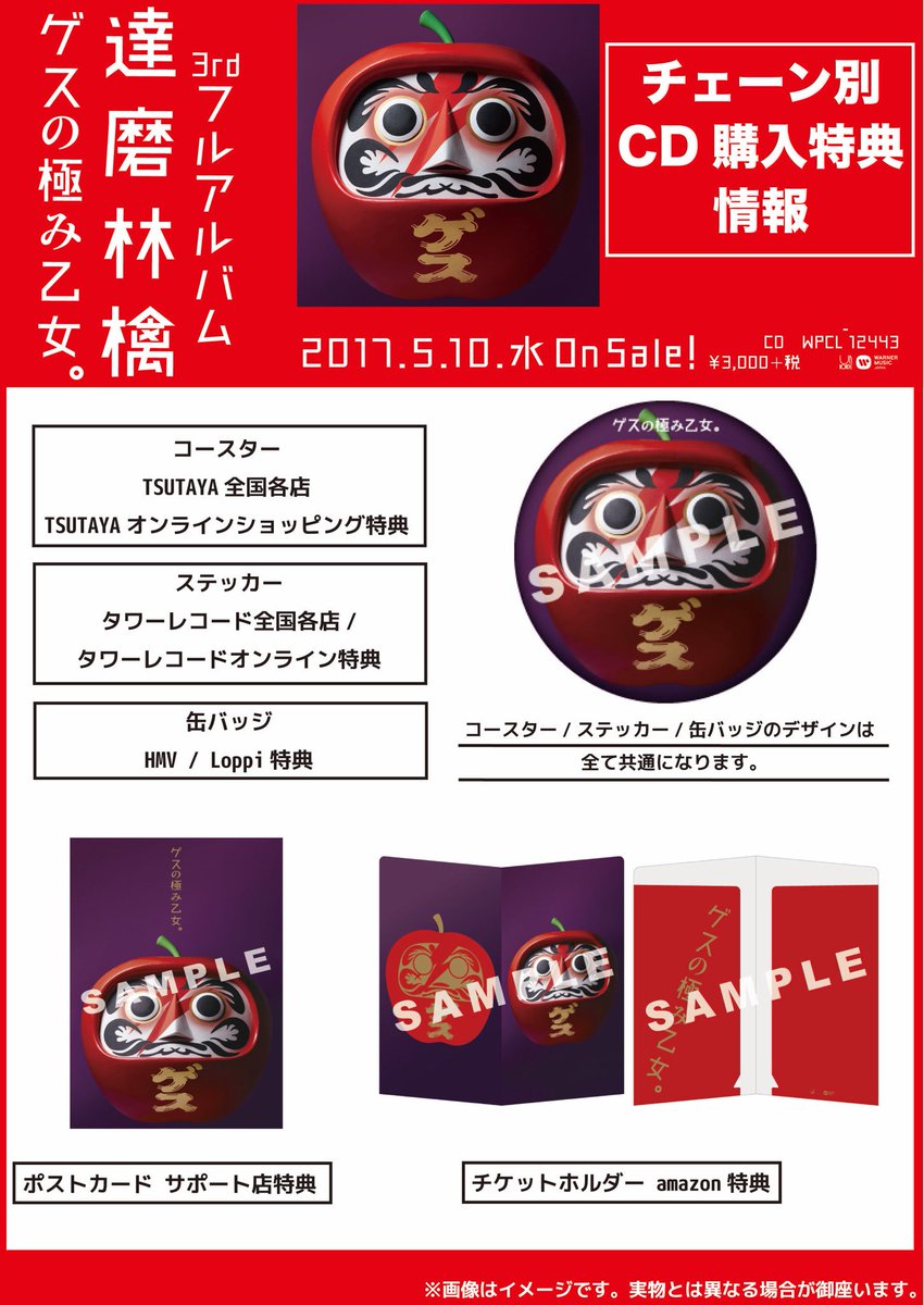 【無料ダウンロード企画開始!】今年12/7発売の3rdフルアルバム『達磨林檎』を記念して、1stリードトラック「シアワセ林檎」の無料DL企画をワーナーミュッジック内の特設サイトで開始!詳細はリンク先で!※12/6(火)23:59まで