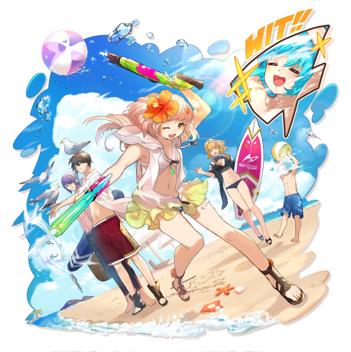 ソシャゲ風自創作絵 銃の代わりに水鉄砲🔫