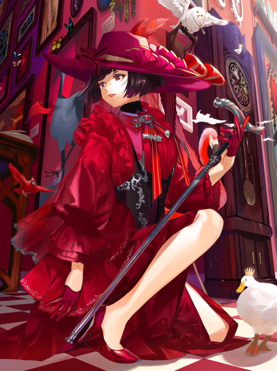 "Lady Carmine" with birds