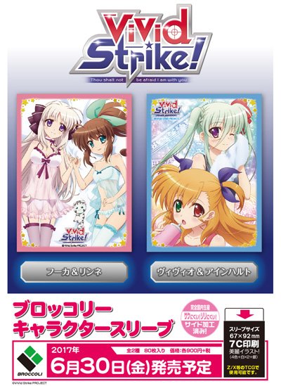 続いては人気TVアニメ「ViVid Strike!」から、ヒロインの「フーカ&リンネ」と人気キャラクター「ヴィヴィオ&アインハルト」のスリーブの発売が決定しました!