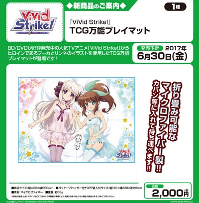 おなじく人気TVアニメ「ViVid Strike!」より、フーカとリンネの二人の可愛らしい姿が描かれたTCG万能プレイマットが登場!