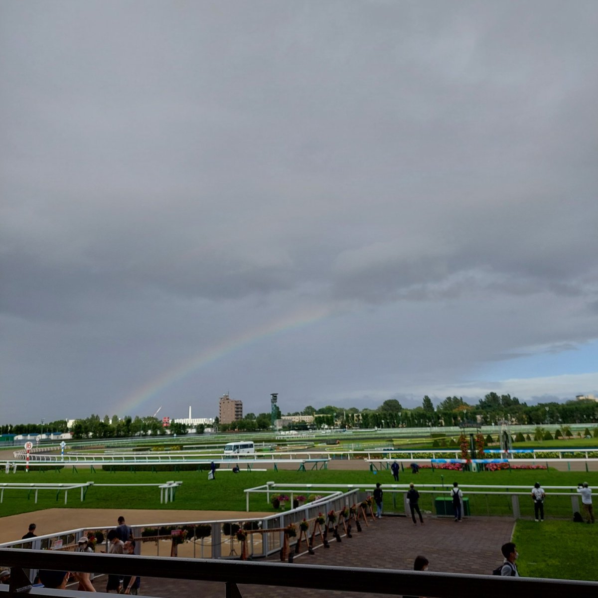 今日の札幌メインレースで突然小雨が直前で大降りになり、スタート後すぐ放馬した馬がみんなゴール後に無事戻ってくると空に大きな虹がでました。タイキシャトルが虹に登った気がしました。ありがとう。