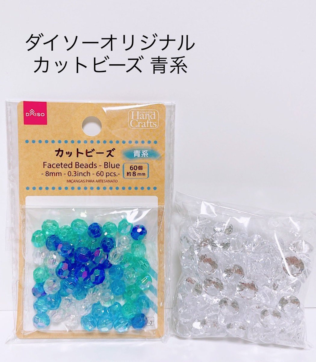 ダイソー「カットビーズ青系」 ミントグリーンが入ったグラデが良い感じ🌎