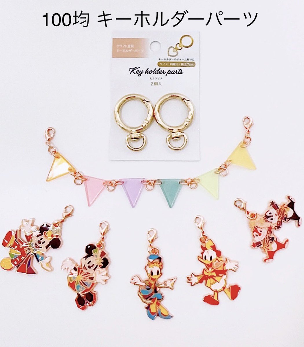 100均のカラビナつきキーホルダーパーツでそのまま飾れる🥰 カチャカチャうるさければクリアポケットの中へ