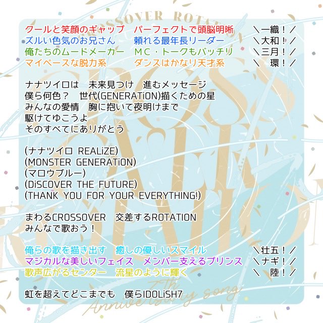 THE POLiCYの「Over the future 永遠じゃなくても」といい、マロウブルーの「僕らは未来へ行かなくちゃ」といい……私たちファンがどんなに不変の永遠を彼らに求めても、一貫して“““新しい僕らへ 変わってく”””スタンスを崩さないの、本当にアイナナくんらしくて大好きなんだよな