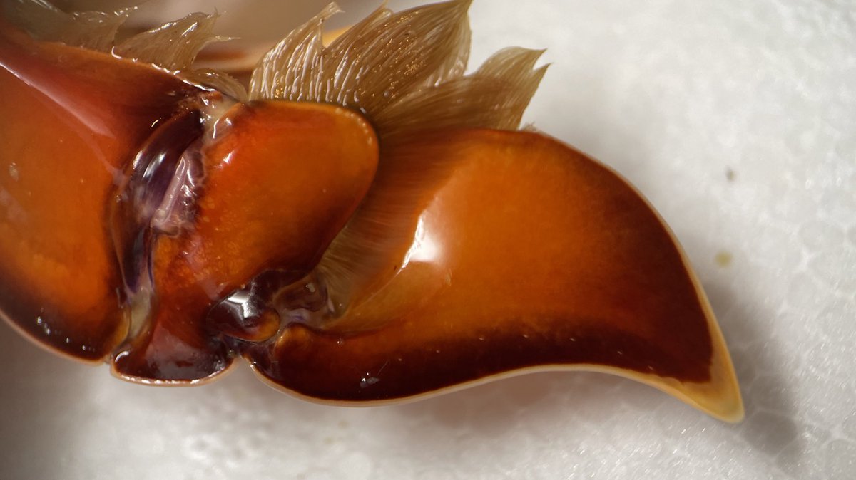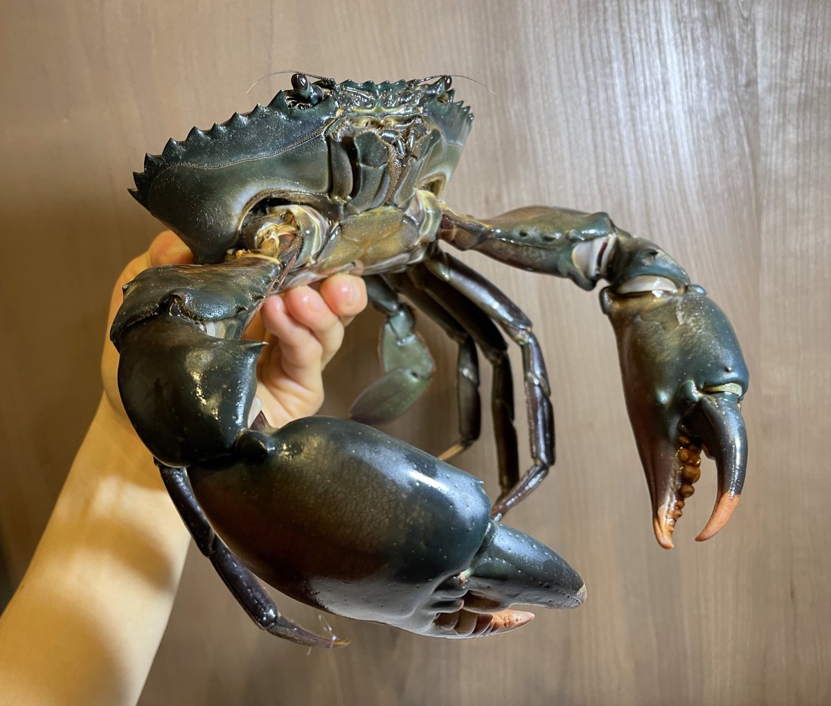 気配を察知すると両腕を大きく広げて威嚇します、さらに近づくと勢いよく腕を閉じます、ハサミの中に何かが触れると、ハサミを閉じて攻撃しますが、そうでない場合はハサミを閉じることはなく、突き刺すような動きをします、ものすごい迫力です