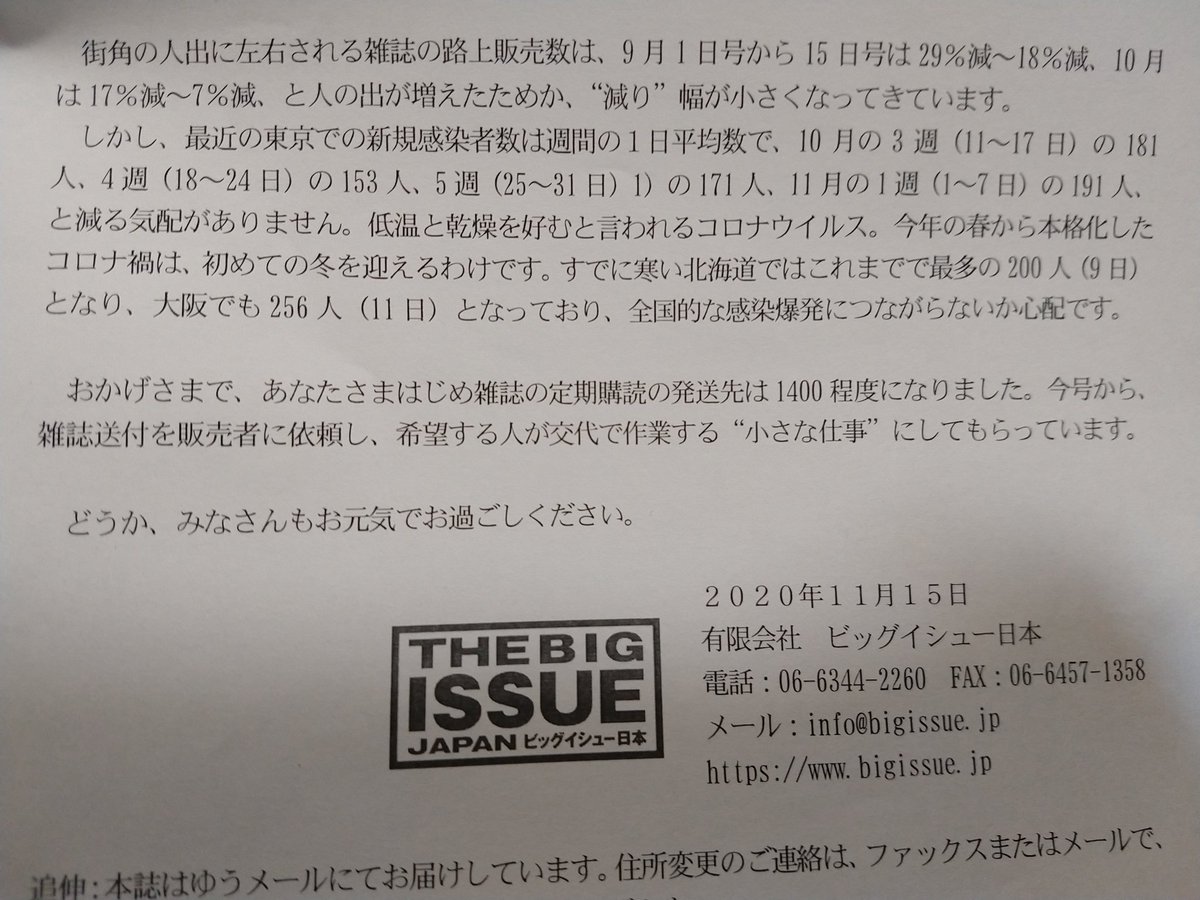 Cakesの軽薄な記事が炎上しても、ずっと誠実に家なき人達の力になってきた @BIG_ISSUE_Japan の最新刊は今回も無事僻地まで届く。