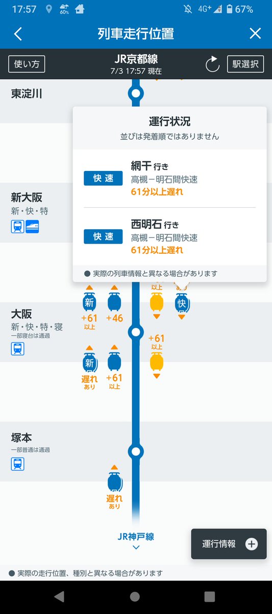 【悲報】快速西明石行、大阪駅満線及び乗務員手配が間に合わない等様々な事情が重なり
