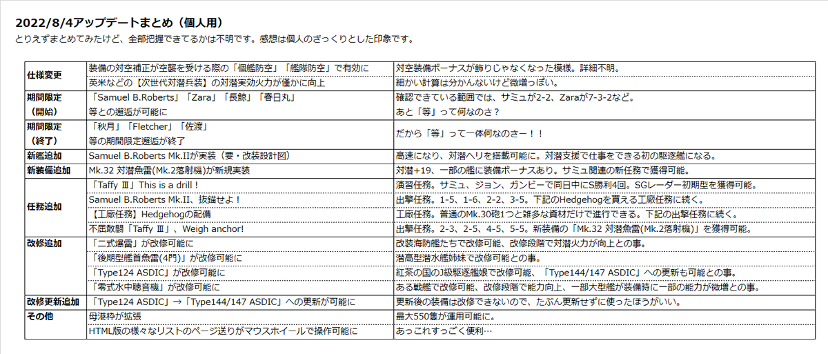 これは歴の長い提督だと大体の方がもう経験済みだと思うけど、大本営が言う限定海域の規模とか報酬の大きさみたいな表現は一切信用できないので、内容がしっかり確定してない時は常に最悪に備えておいたほうがいいでち。自称中規模の大規模とかささやかな根幹システム仕様変更とか前科が多すぎるでち!
